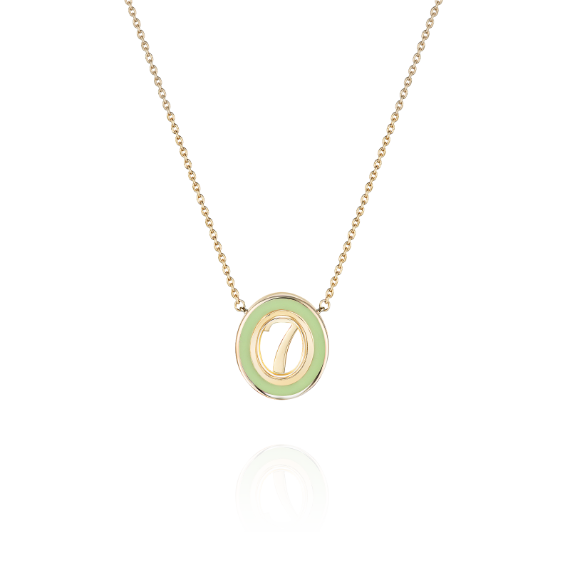 The conceptual pendant on a chain with three levels of length is made of yellow gold. In the center of the pendant, under a sapphire crystal with a rim of colored enamel, there is a gold numeral. The meaning and meaning of the number may not be available to outsiders, but it is extremely important to you.